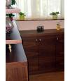 Viasszal kezelt pácolt felület, vésett ajtófrontokkal