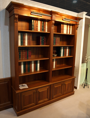 Cseresznyefából készített könyvszekrény és hozzá illő tükör, asztal klasszikus elegáns stílusban